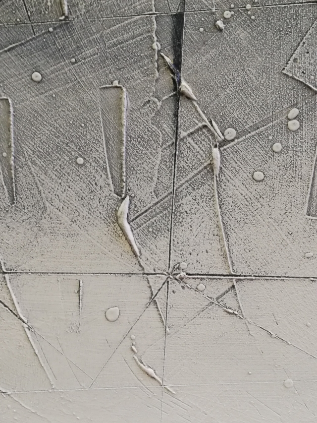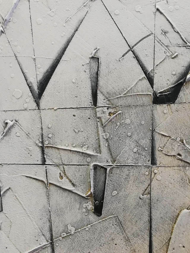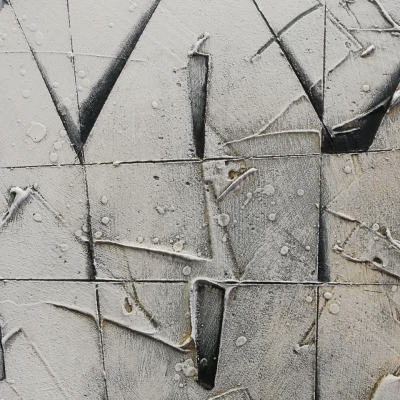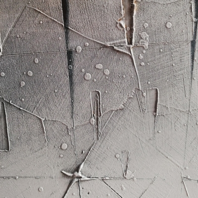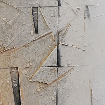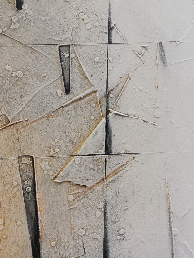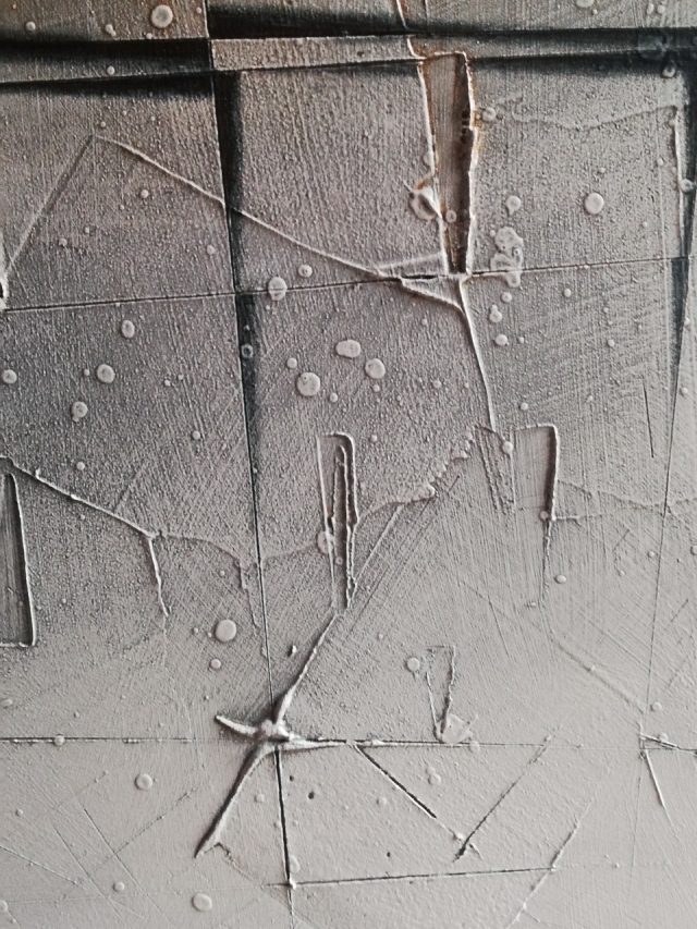 Kombinovaná - akryl tmel a barvy na sololitu + úzký hliníkový rám