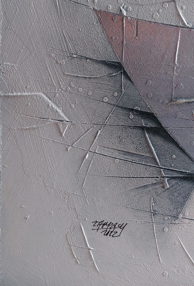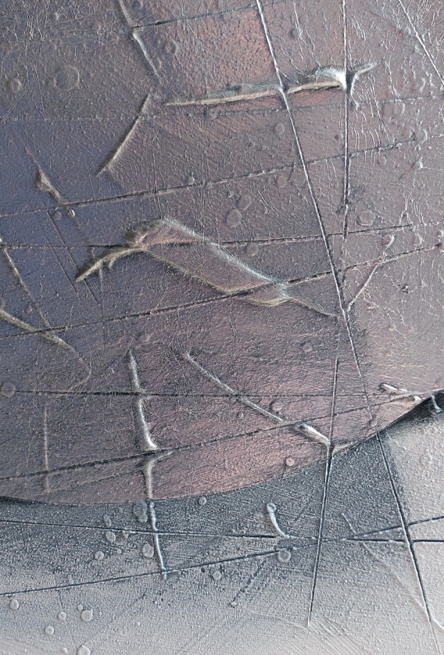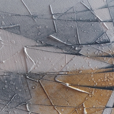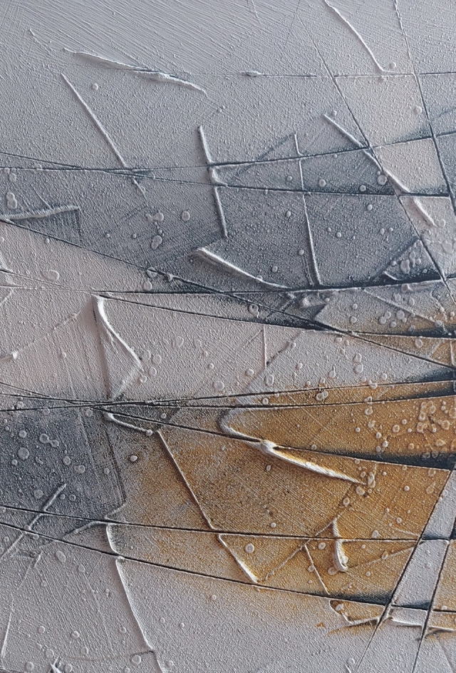 Kombinovaná - akryl tmel a barvy na sololitu, plátkový kov + úzký hliníkový rám