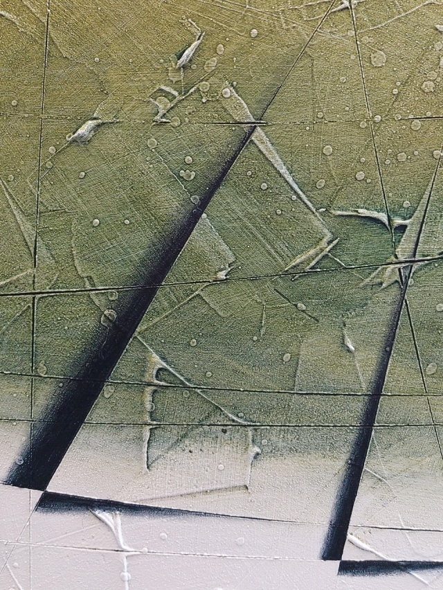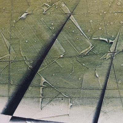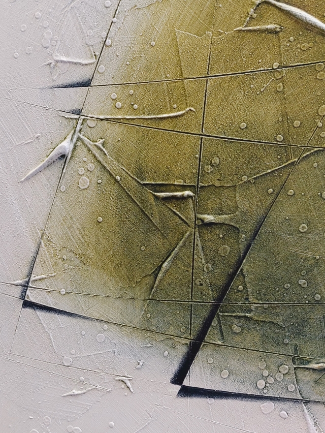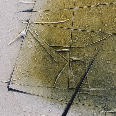 Kombinovaná - akryl tmel a barvy na sololitu, plátkový kov + úzký hliníkový rám